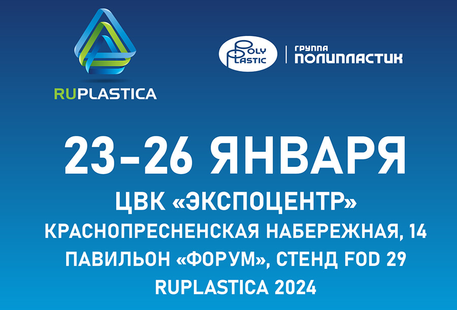С 23 по 26 января 2024 года в ЦВК «Экспоцентр» состоится 26-я Международная специализированная выставка пластмасс и каучуков «RUPLASTICA 2024».