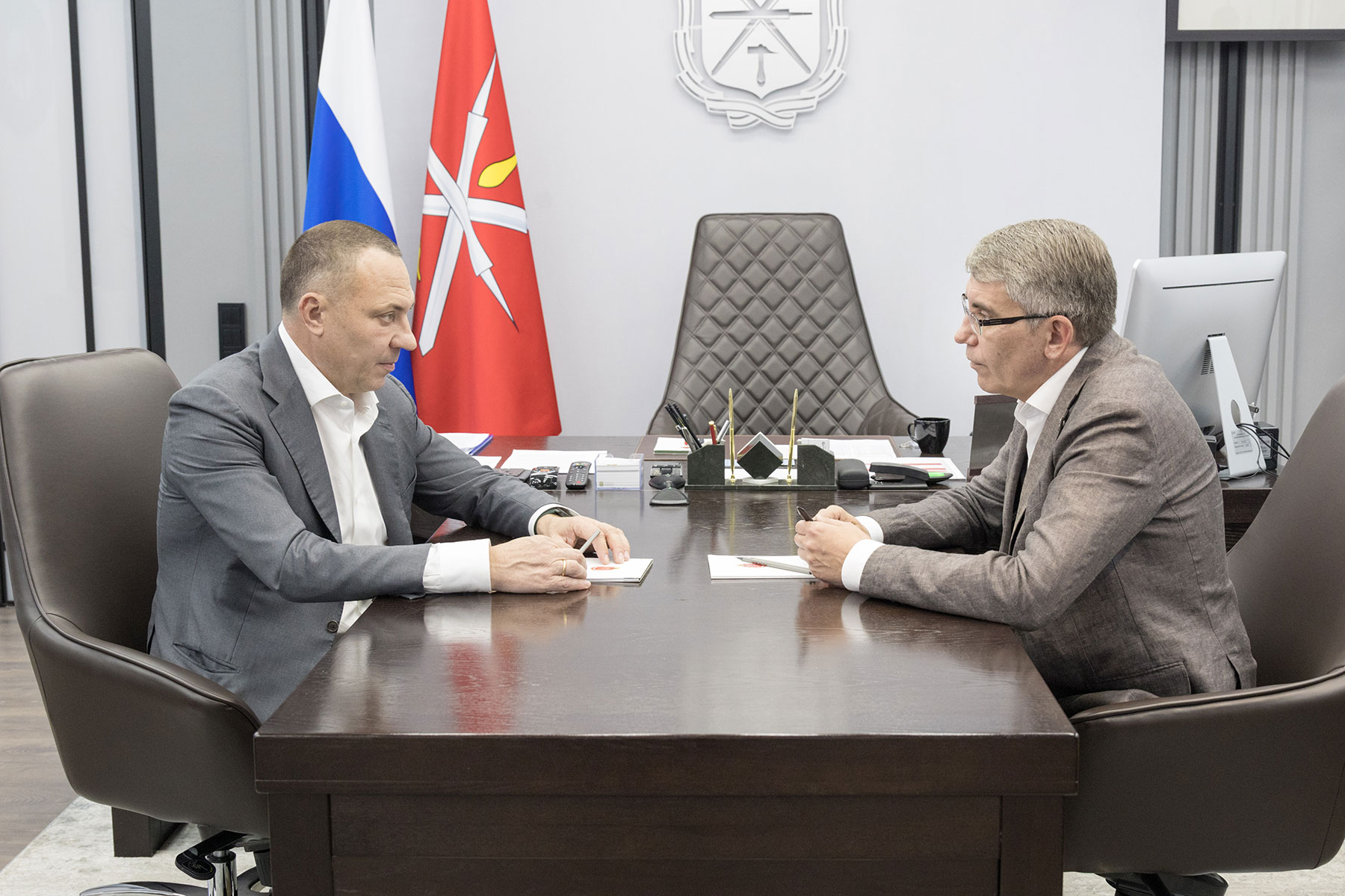 В четверг, 4 июля, временно исполняющий обязанности Губернатора Тульской области Дмитрий Миляев провёл рабочую встречу с акционером агрокомпании «Грибная радуга» и владельцем компании «АгроГриб» Александром Удодовым.