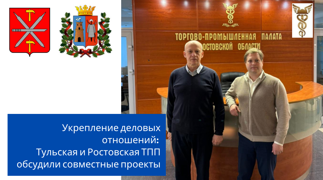 Тульская ТПП ведет активную работу по поиску возможностей продвижения интересов предпринимателей региона. Состоялась встреча с ТПП Ростова-на-Дону