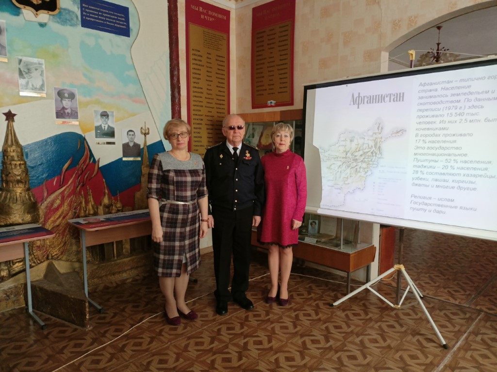 14 февраля сотрудники Центральной городской библиотеки имени Л. Н. Никоновой провели для учащихся МБОУ «Центр образования № 2» урок мужества «Эхо огненных гор» . Председатель Совета ветеранов (пенсионеров) войны, труда, вооружённых сил и правоохранительных органов, член Общественного Совета Виктор Александрович Раст рассказал о памятном дне 15 февраля – Дне памяти о россиянах, исполнявших служебный долг за пределами Отечества .
