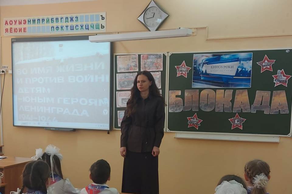 Дарья Герасимова вместе с учениками 3 класса посмотрела фильм «Думать тишину», который посвящен блокаде Ленинграда. Этот фильм переносит зрителей в тяжелые дни блокады, рассказывает о судьбах детей, которым удалось сохранить человечность в условиях крайней нужды и опасности.