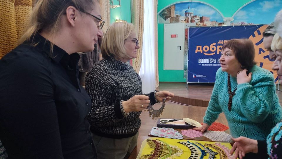 Перед началом встречи была организована выставка изделий, которые изготовлены пенсионерами: это вязанные свитера, кофточки, кружевные салфетки, носки для участников СВО, изделия из бисера. Были представлены украшения ручной работы жительницы Пролетарского округа Татьяны Фониной. Это серьги, броши, подвески, кулоны. Марина Косолапова порадовала присутствующих тонкой работой своих изделий. Это шкатулки, подносы, декор для дома, новогодние игрушки и многое другое.