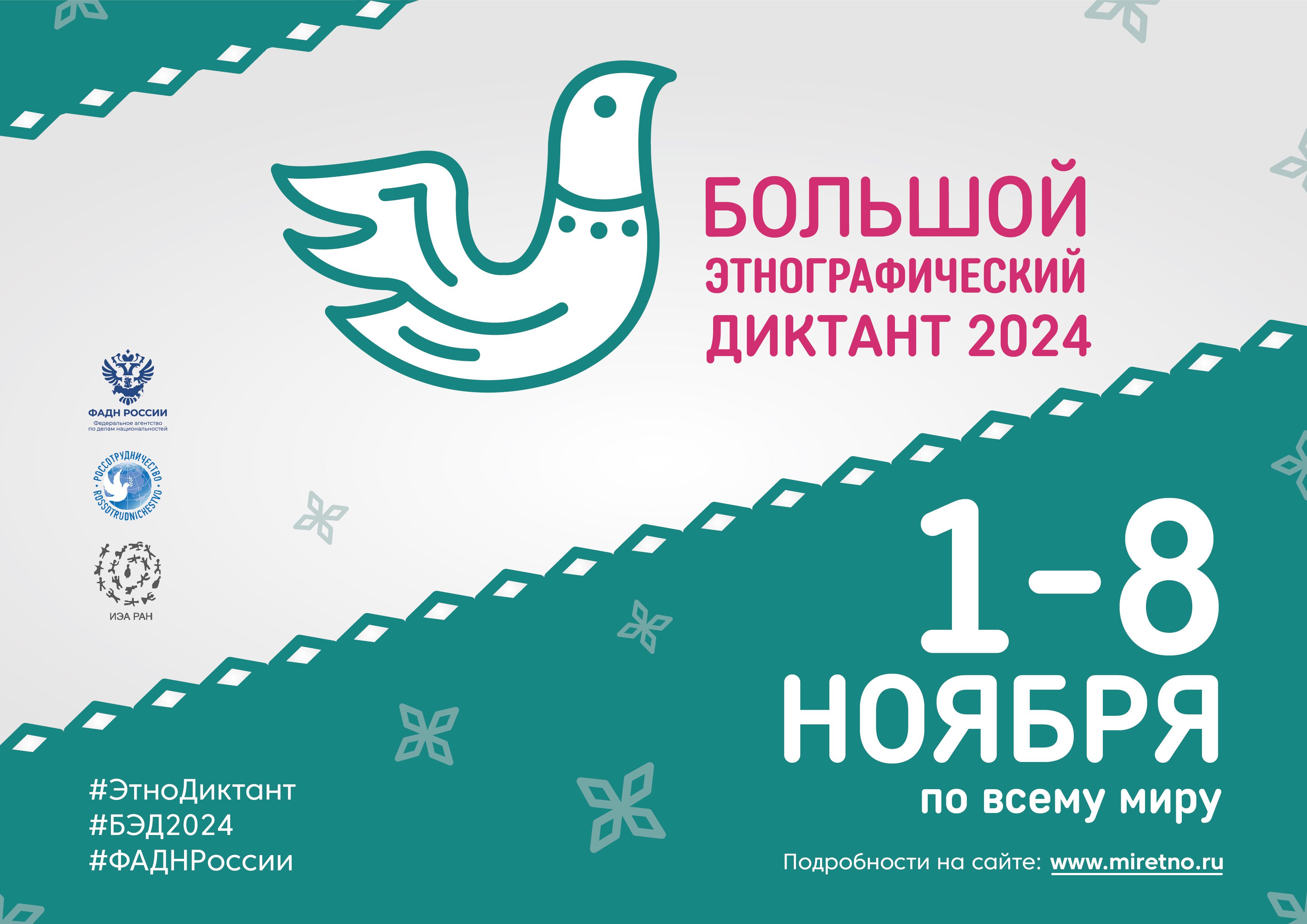 С 1 по 8 ноября 2024 года в рамках празднования Дня народного единства пройдет IX Международная просветительская акция «Большой этнографический диктант 2024». Данная акция направлена на изучение культуры, традиций и истории народов, проживающих на территории Российской Федерации.