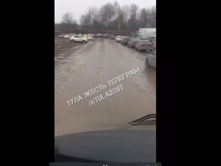 Жители Тульской области вынуждены находиться в условиях бездорожья на парковке у склада Wildberries в Алексинском районе
